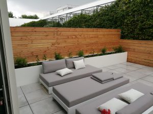 🌱 Lichtgewicht Groen 🌼 Bij het ontwerpen van daktuinen staan functionaliteit en duurzaamheid centraal. Onze witte lichtgewicht bloembakken zijn niet alleen stijlvol, maar ook praktisch. Ze zijn beplant met diverse groenblijvende planten en bomen die zorgen voor kleur en leven in deze stedelijke oase. Bovendien is de onderkant van de bakken slim opgevuld met piepschuim, wat de stabiliteit en veiligheid van het dakterras waarborgt zonder het te overbelasten.